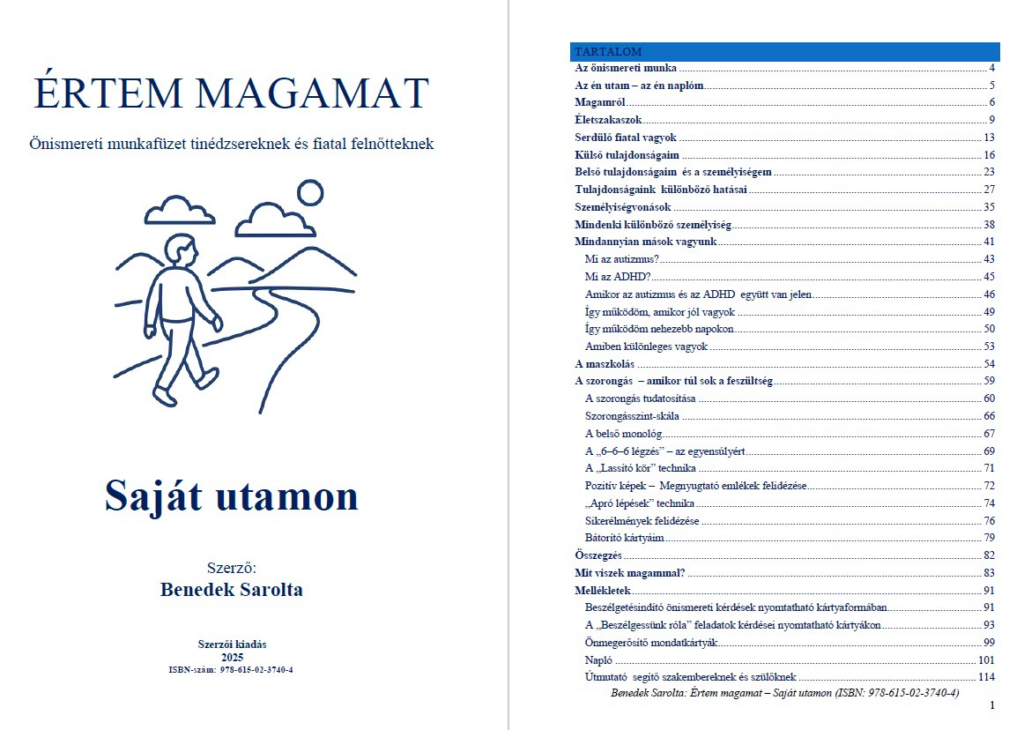 Tehát: a Saját utamon nem egy gyorsan kitölthető feladatgyűjtemény, hanem egy önismereti út, amely hónapokon át kísér (sokszor egy tanév sem elég rá!), és amelyben minden oldal a maga idejében nyer értelmet.